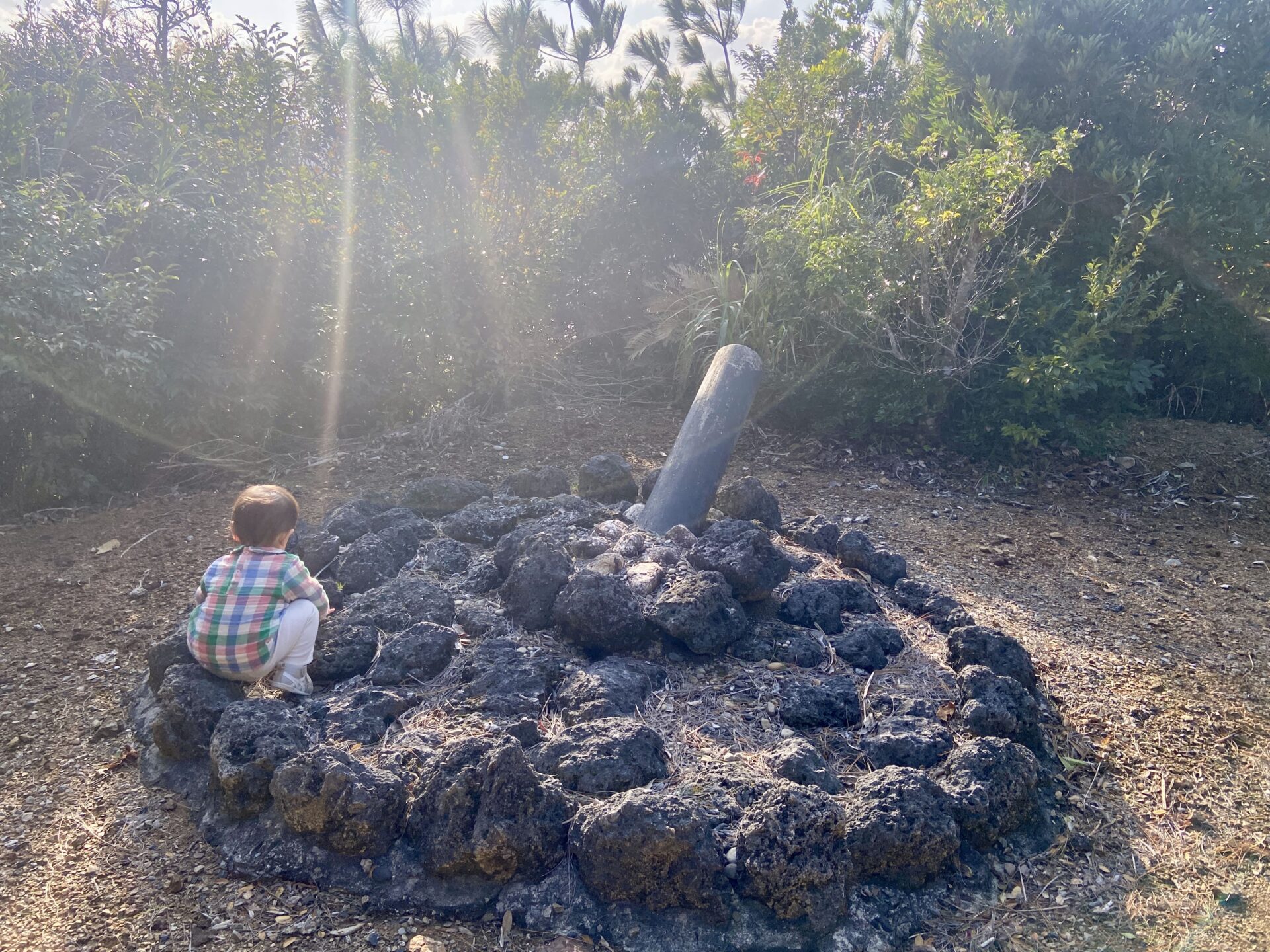 (↓まめぞうちゃん@加計呂麻の戦跡)